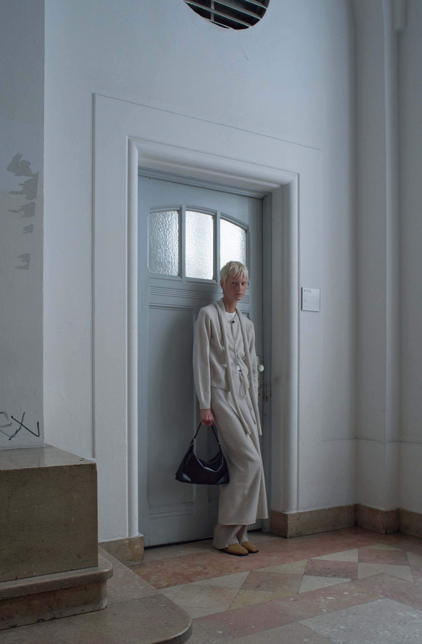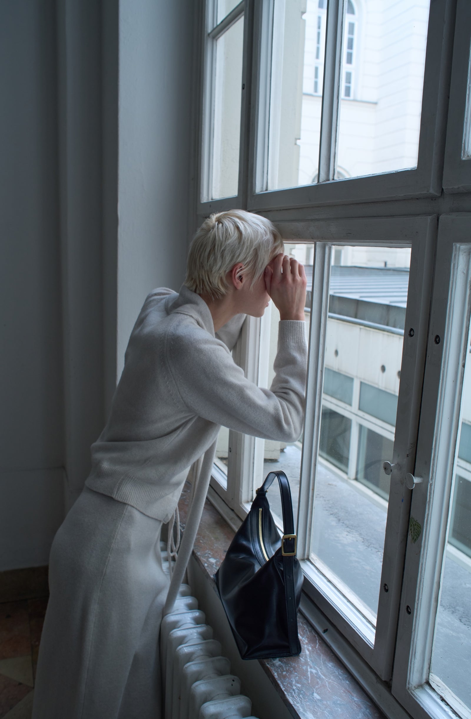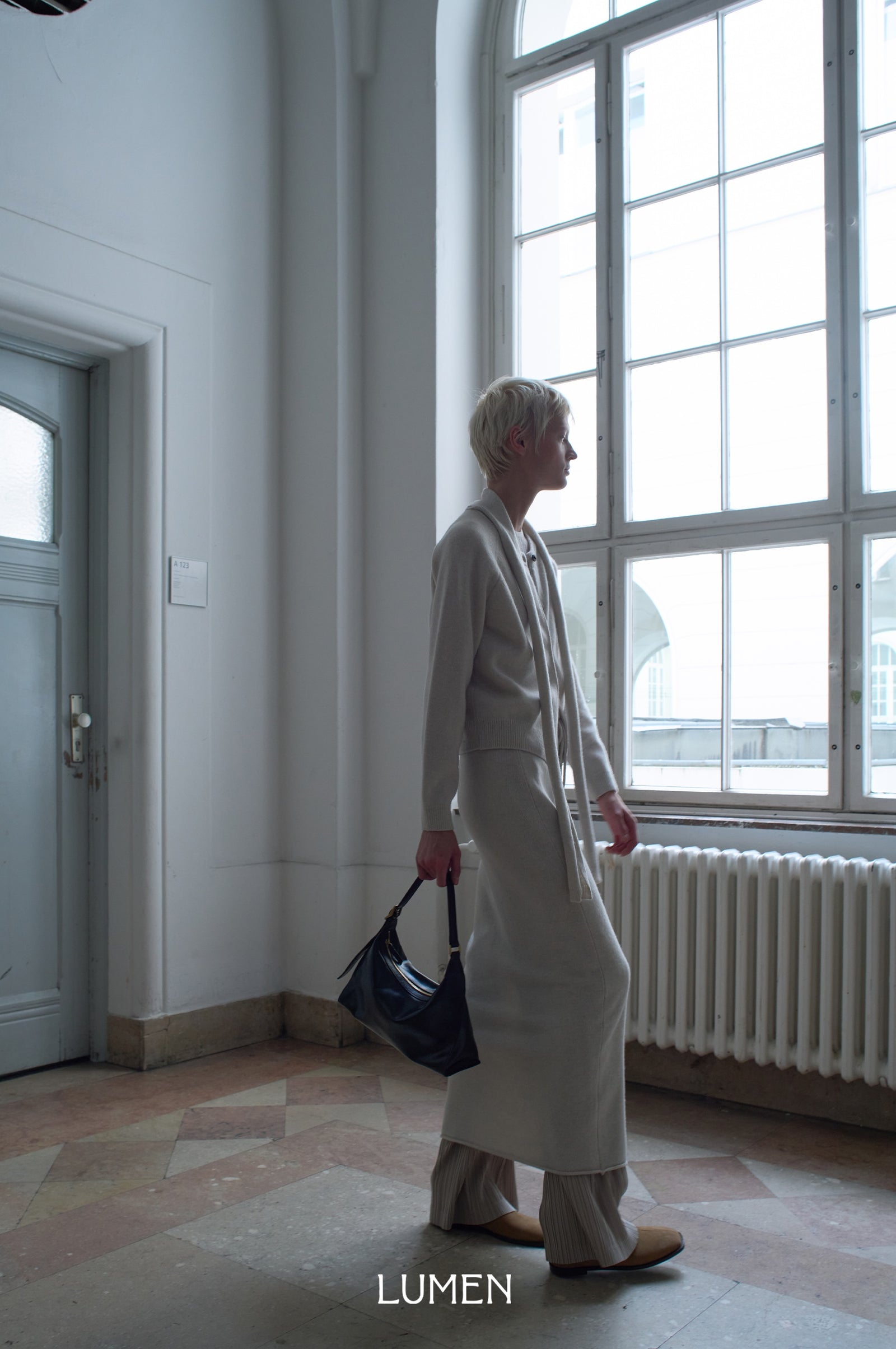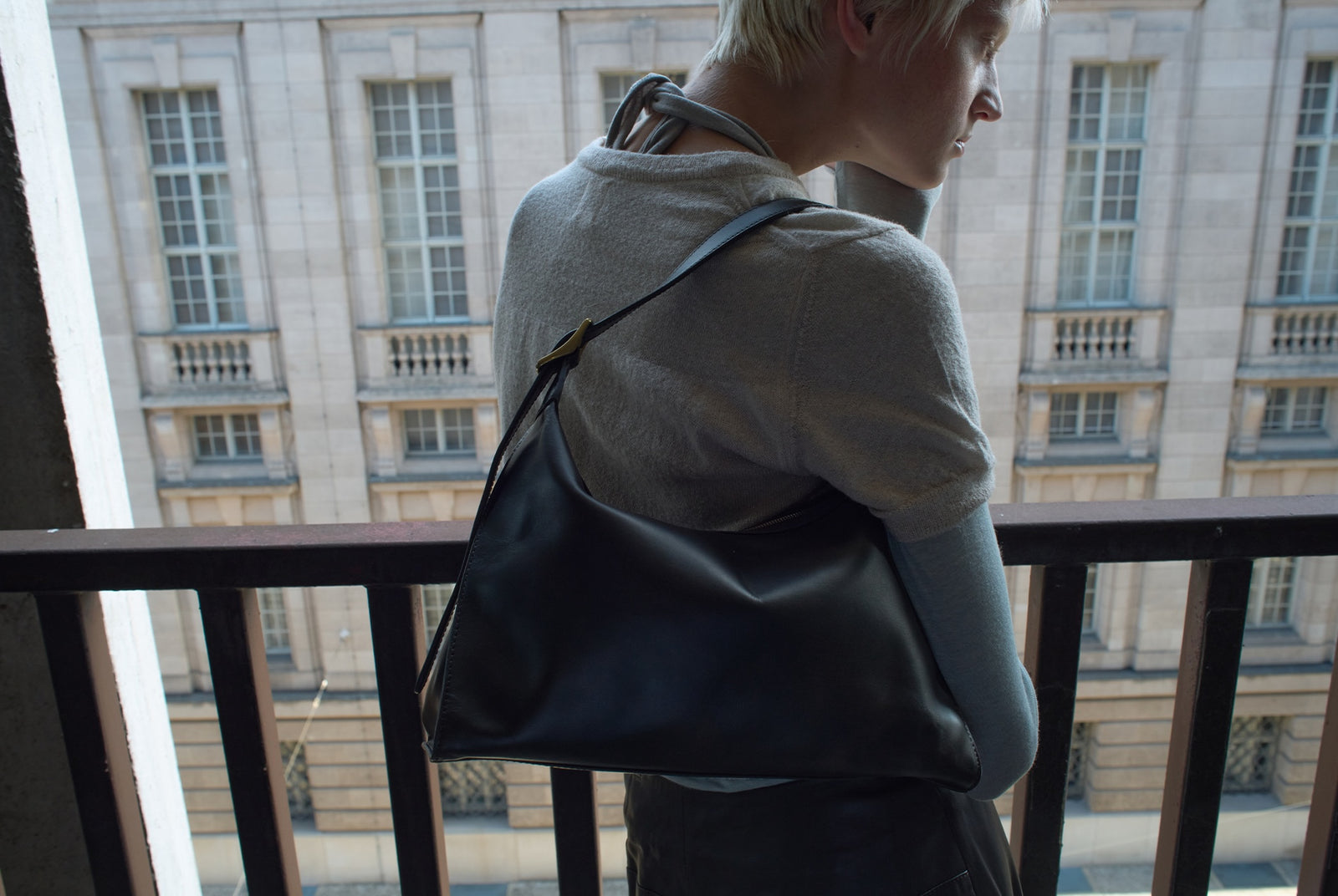 The Arete Demi bag features an asymmetrical structure completed by diagonal cuts on the side and a practical size. Sharing the design of the original Arete bag, the proportions and size have been adjusted to create a compact silhouette, as reflected in the French word "Demi" (meaning "half") in its name. Available in three distinct colors: Soft Black with the subtle sheen of oiled pull-up leather, Brushed Brown with a two-tone vintage vibe, and Nubuck Fone with its unique leather texture and softness, the Arete Demi bag offers a variety of moods within a single design. Simple metal accessories, such as the buckle and zipper, add a casual mood to the refined proportions while also providing practicality as functional elements. The adjustable buckle strap allows for versatile use as both a tote and a shoulder bag, making this bag perfect for everyday use regardless of outfit or occasion.
