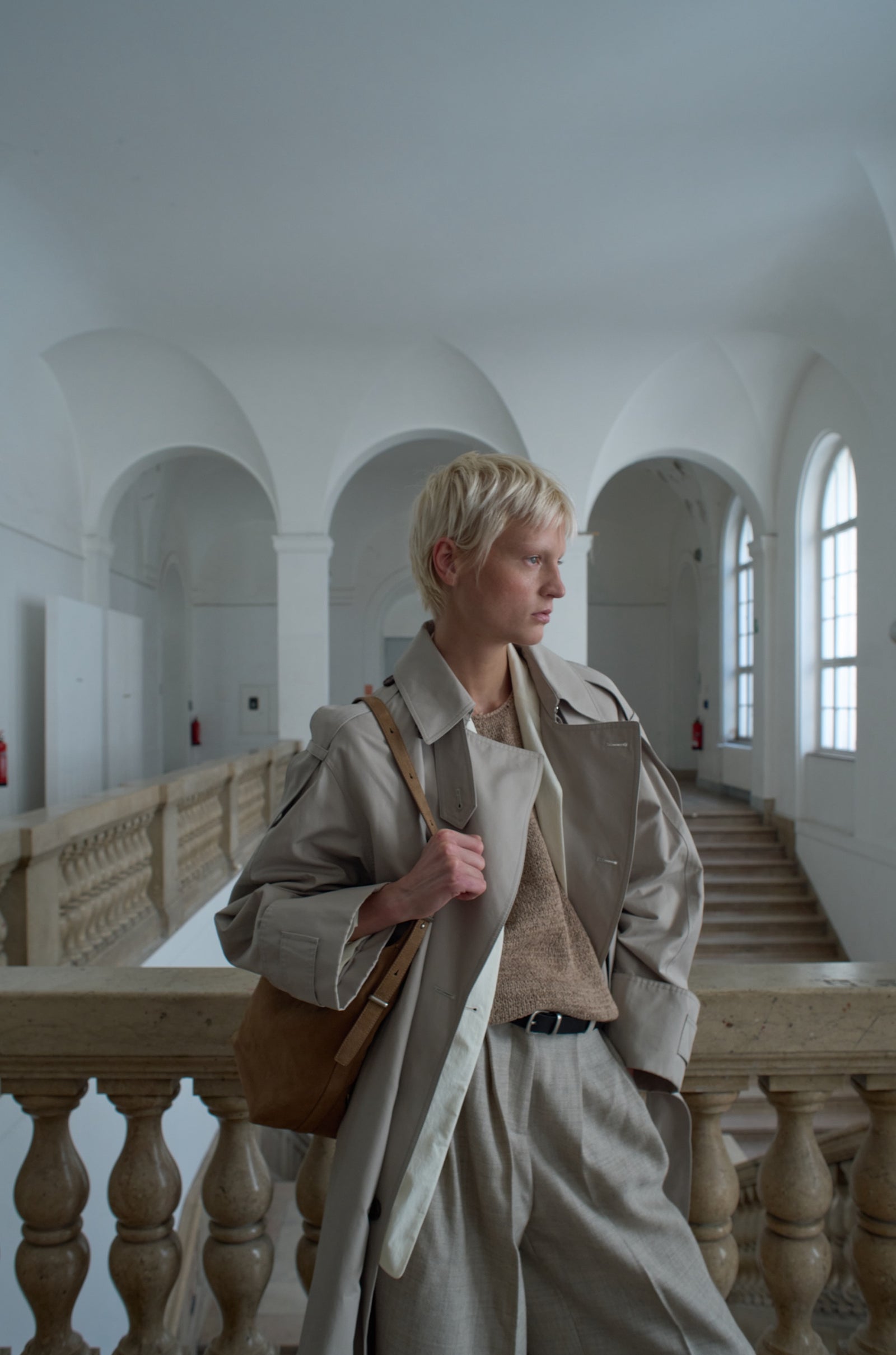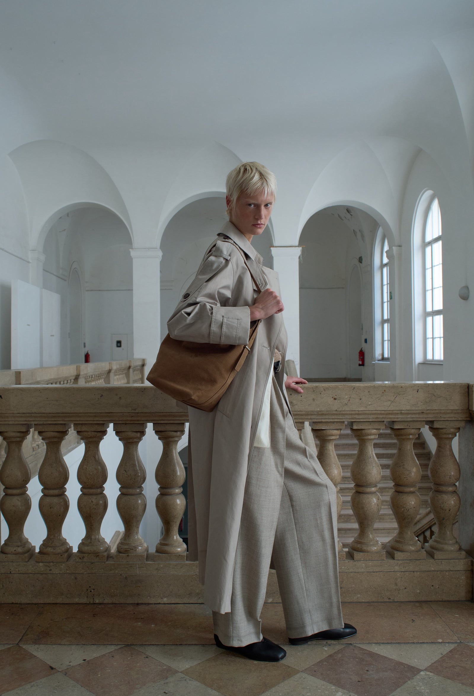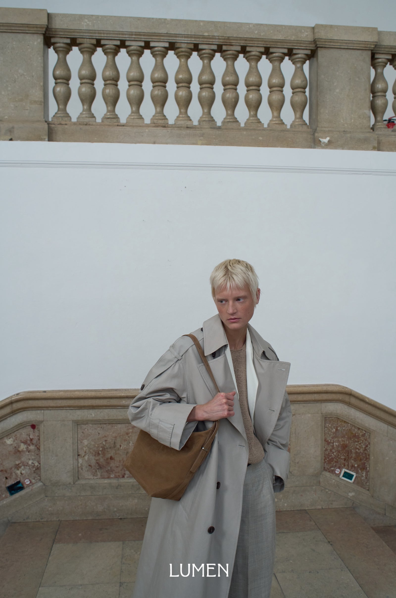 The Baia bag stands out with its naturally flowing silhouette. The strap, flowing gracefully over the vertically proportioned body, gently guides the eye and adds a refined sense of balance to the overall look. The side detailing connecting the strap and the bottom, finished with a folded envelope, create an elegant silhouette despite its simple form. Simple metal accessories like buttons, studs, and a zipper add a casual vibe while also providing practicality as functional elements. The scratch-resistant, embossed pebble leather offers exceptional durability, while the new nubuck phone, introduced for the 25FW season, offers a soft, velvety texture that adds a touch of charm. This design, combining relaxed balance with a modern sensibility, seamlessly blends into a variety of everyday looks.