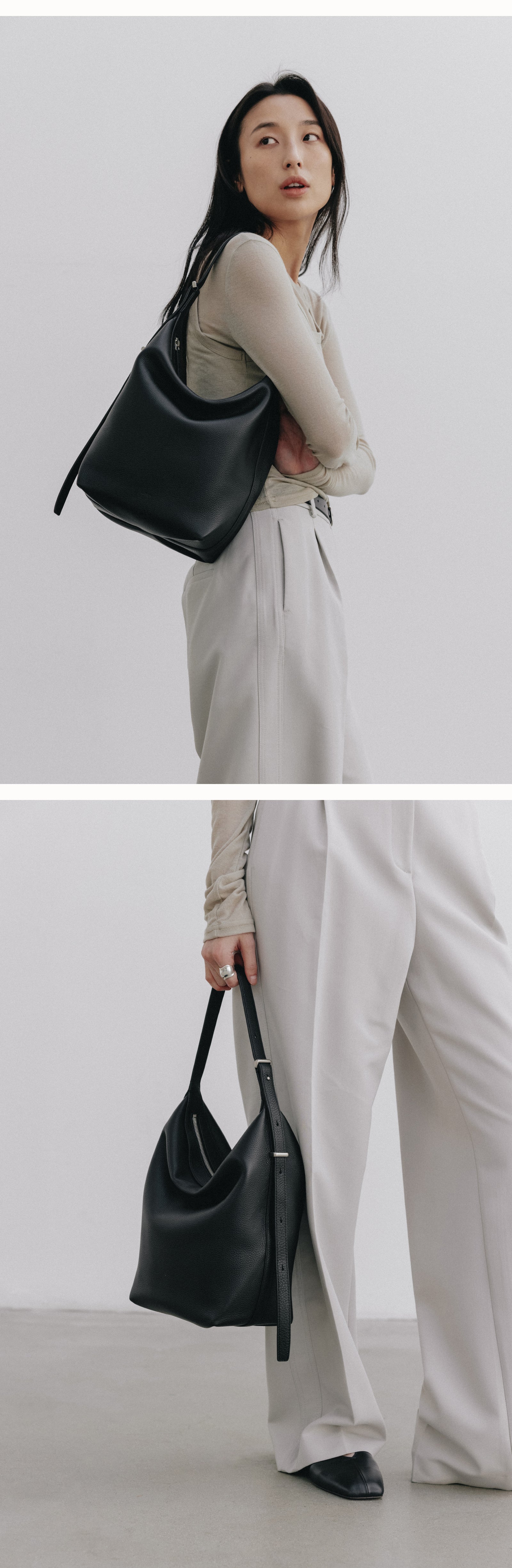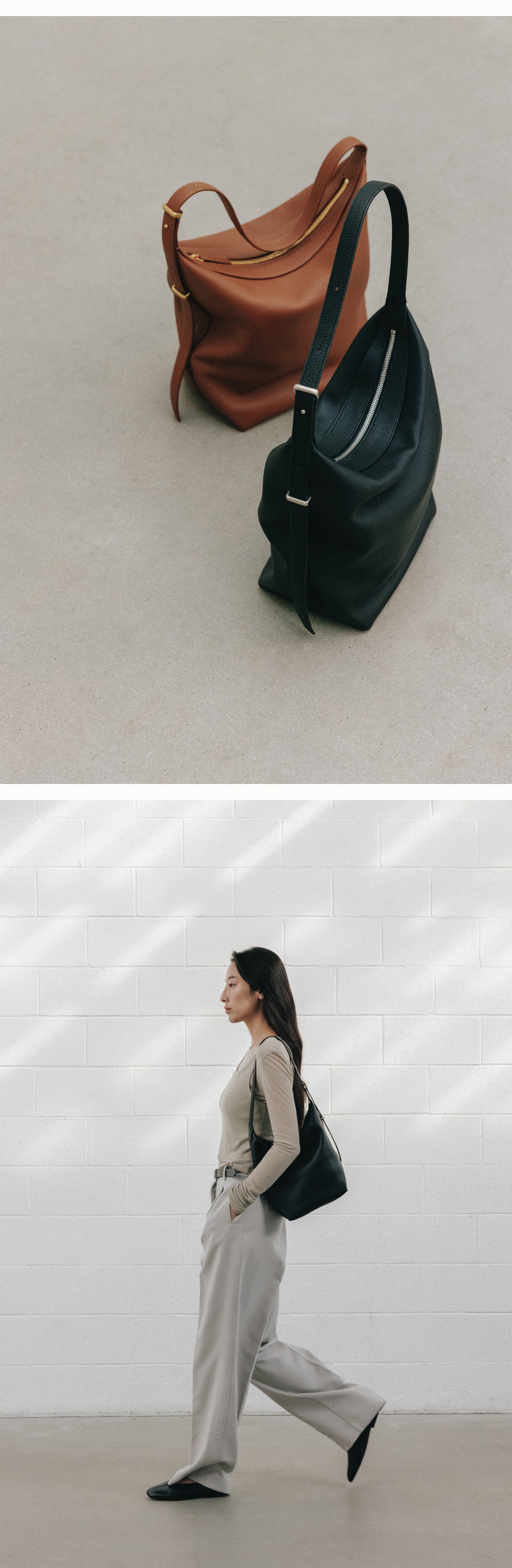 The Baia bag stands out with its naturally flowing silhouette. It can be opened and closed with a zipper for easy use, and the bottom of the bag features a detail that looks like it has been folded like an envelope. It is made of scratch-resistant embossed pebble leather, making it highly durable, and its modern style with a sense of leisure makes it a product that goes well with any everyday outfit.