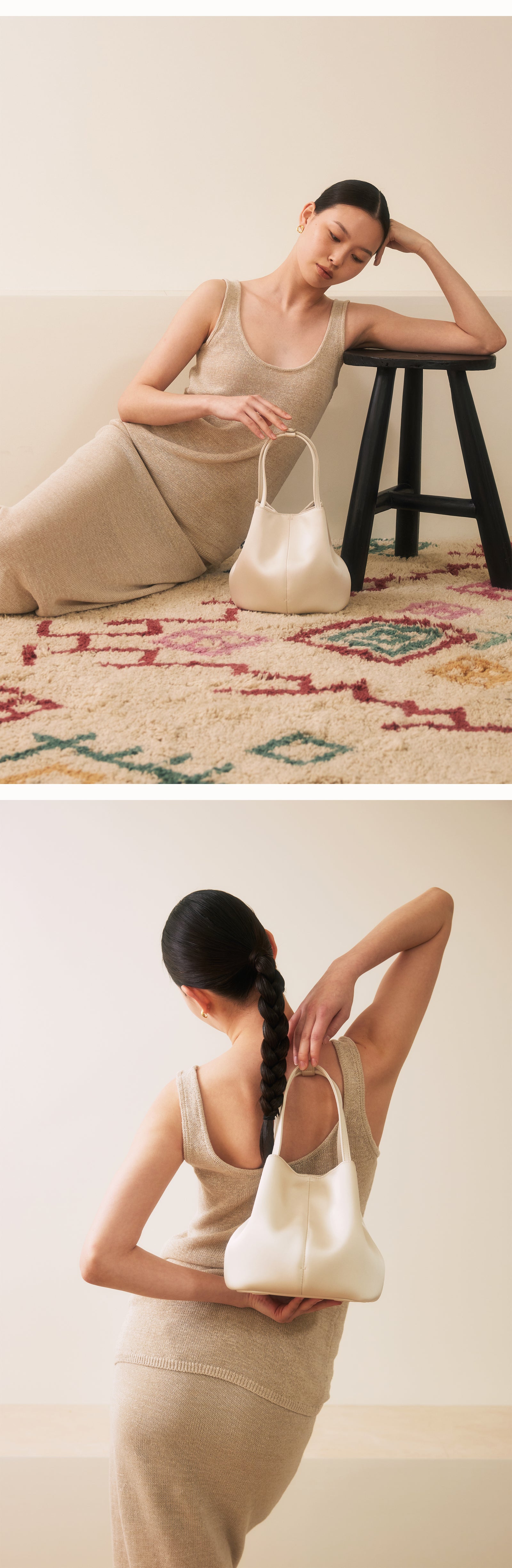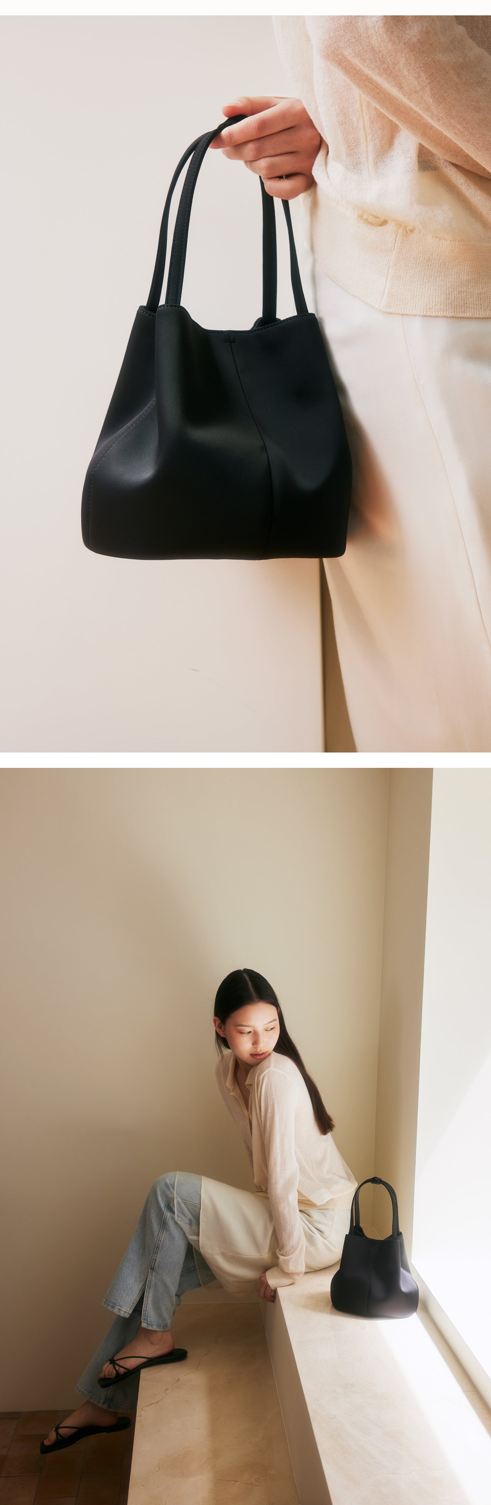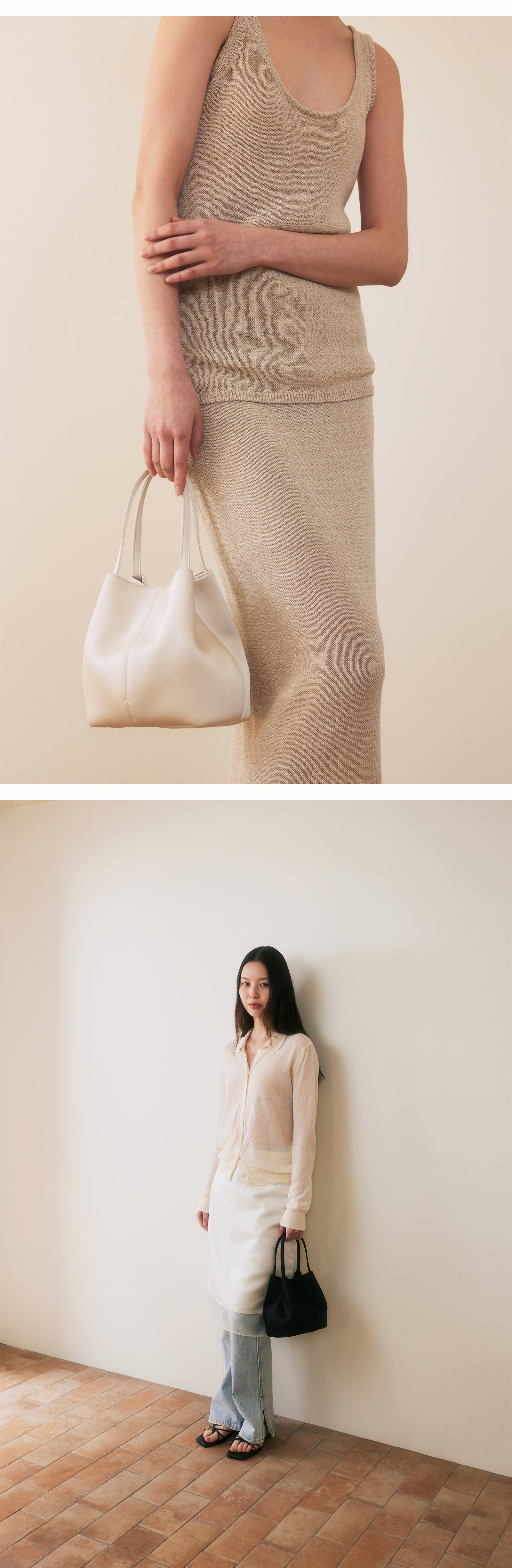 It's an attractive bon ballon bag with a bag with a full volume.It is a Bokjori bag that can be opened and closed comfortably while maintaining a minimal appearance using hidden magnets inside. Using 100% natural silk materials, the unique soft touch and subtle gloss add luxury. With a light weight of 290g, it is a tote bag that is easy to use in spring and summer.