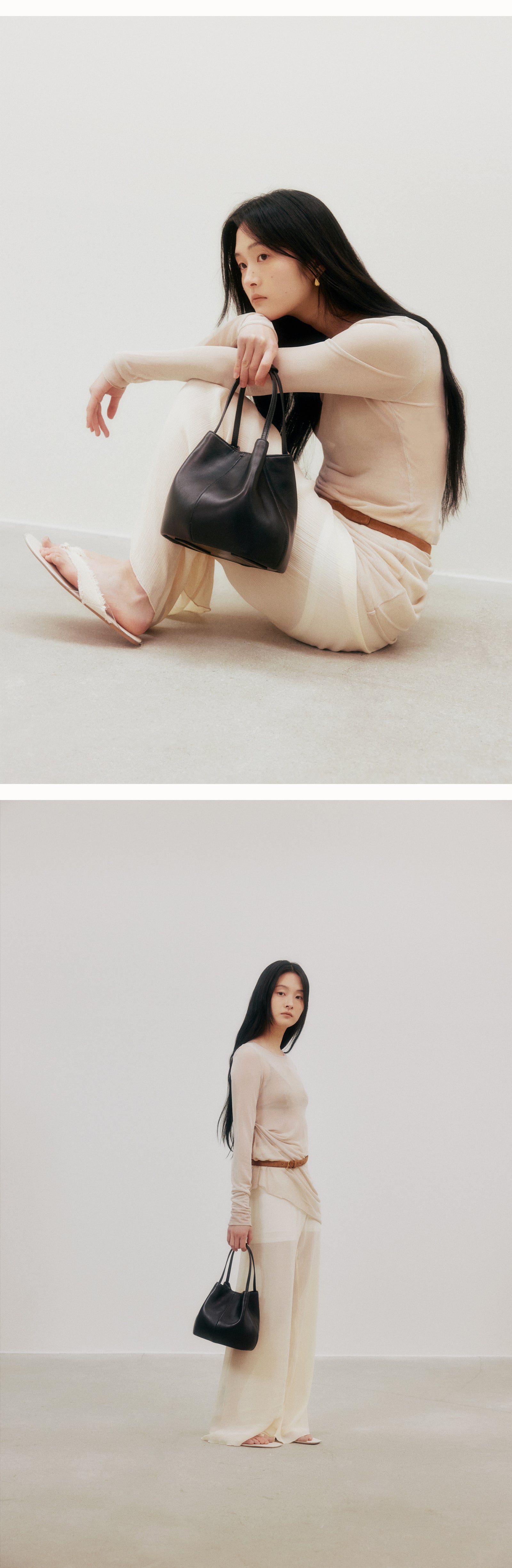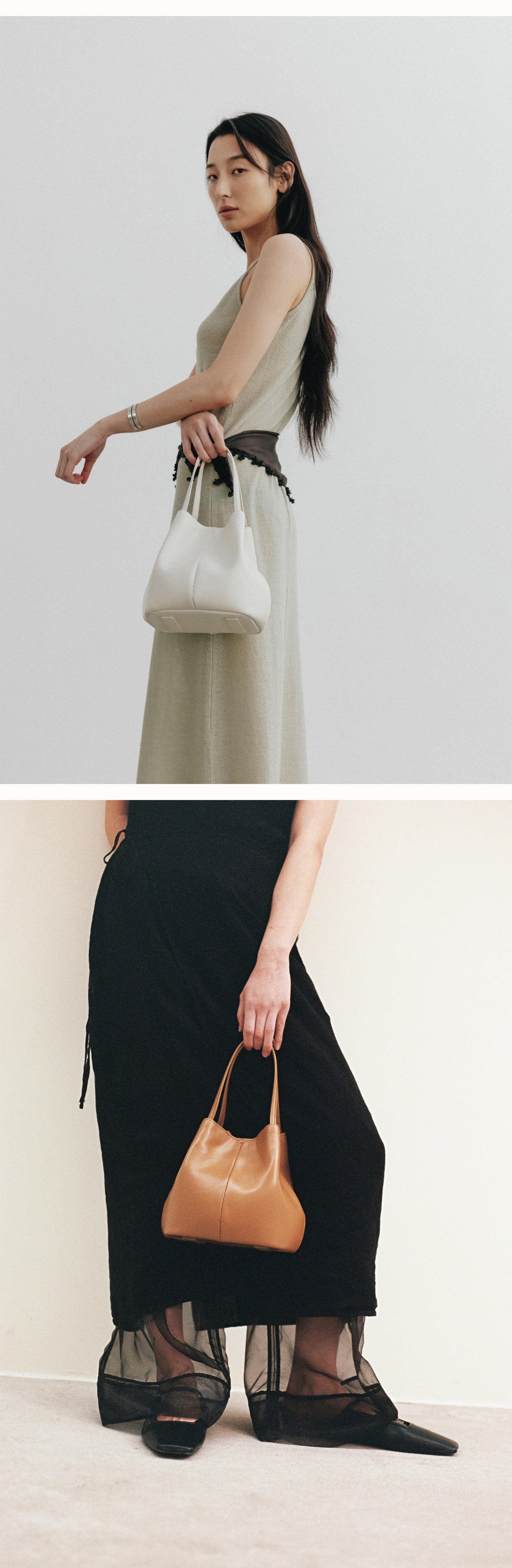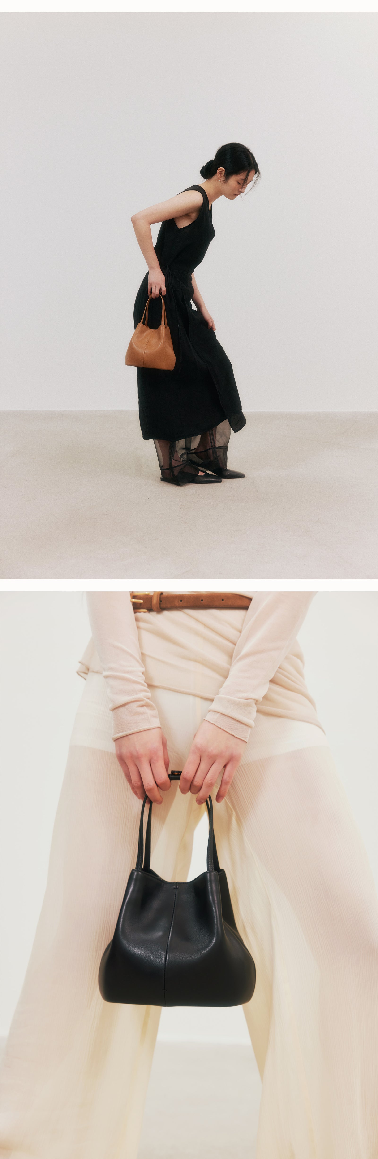 This is a Bon ballon bag with a charming shape and a puffy volume. It is a bag that can be opened and closed easily while maintaining a minimalist appearance by using hidden magnets inside. It is light at 300g, so it is refreshing to wear, and it stands out for its soft touch and comfortable fit.