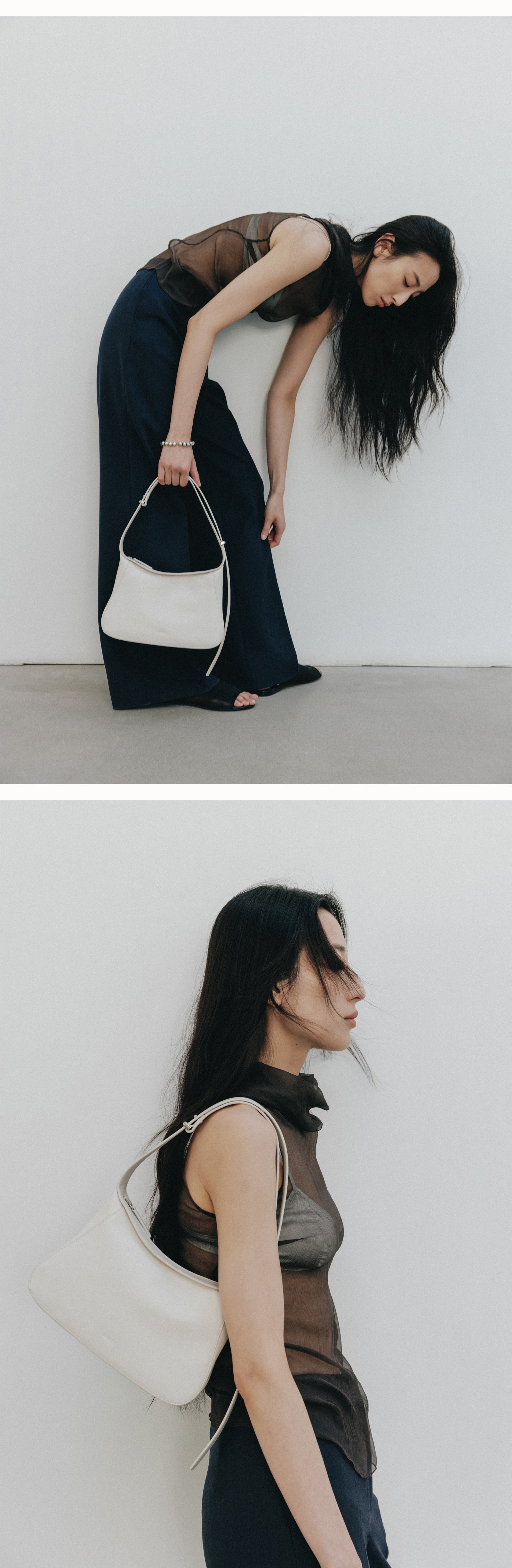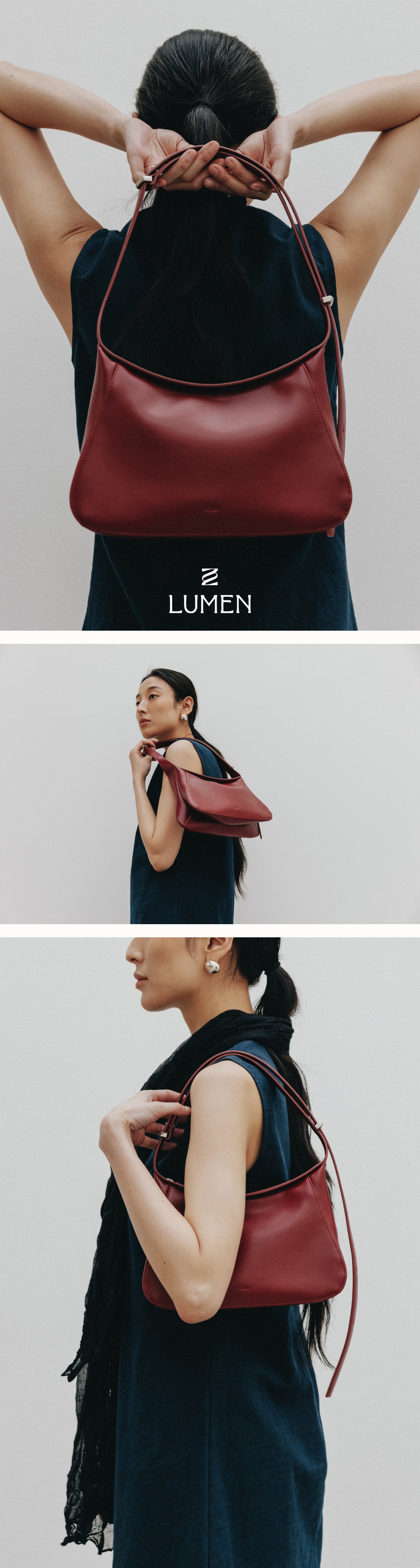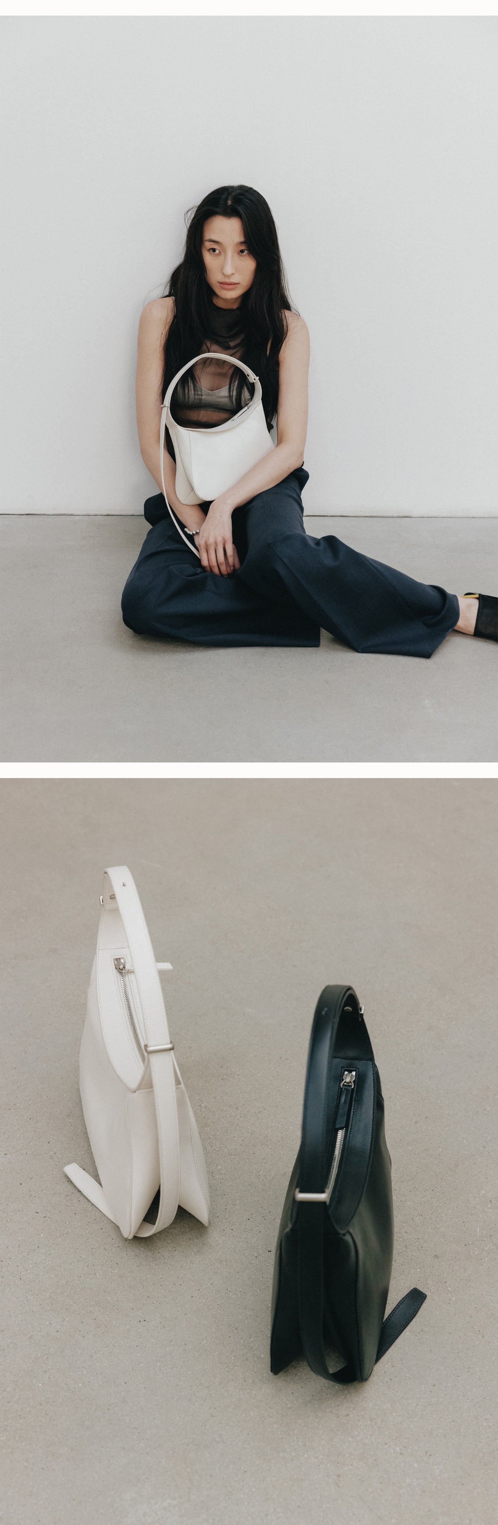 This is a Cote bag with added details using Lumen's tunnel decoration. It is made of a single band from the zipper part of the entrance to the strap, and the wing-shaped design makes the bag stand out with its structural details. It can be worn refreshingly with light clothing, and the strap length can be adjusted to create a 3-way tote shoulder cross look.