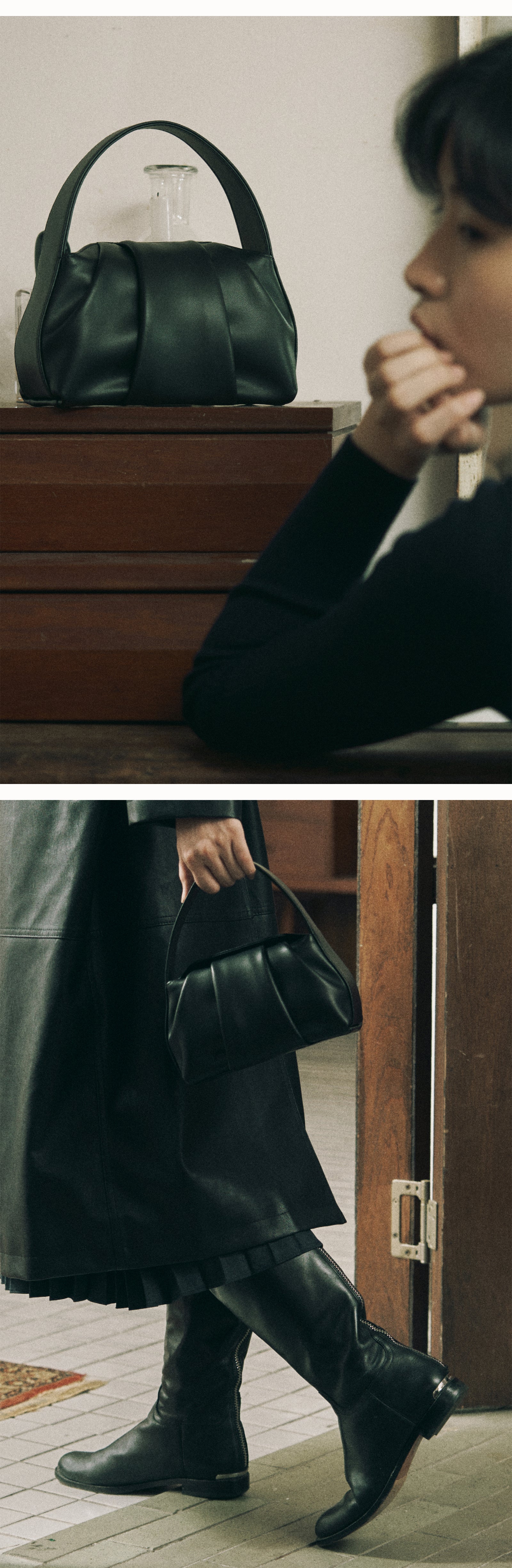 It is a Fantine bag with a carefully folded soft shirring and a compact shape. It features a structural and elegant silhouette with a voluminous leather shirring and a high-quality finish. Using soft and smooth-textured cowhide, it maintains the shirring of the bag and provides a soft aesthetic. You can strap it to the inner D ring and cross it or lift it as a hand-wrapped top handle. The Fantine bag, which provides a comfortable fit with a light weight, offers a soft blend in any season.