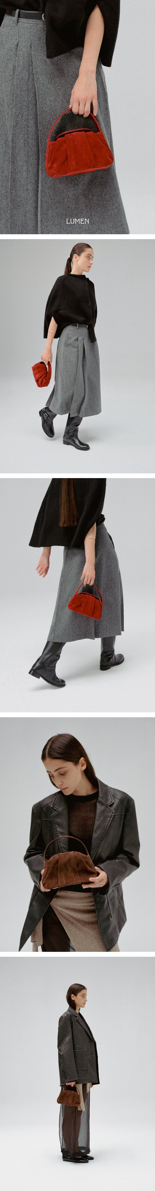 The Fantine bag features delicately folded, soft shirring and a refined silhouette. The shirring details, which accentuate the volume of the leather, and the delicate finish combine to create a structured yet elegant silhouette. The soft suede material maintains its natural shirring, while its warm texture adds a subtle aesthetic. The internal D-ring allows for a strap to be attached as a crossbody bag, while the top handle, which wraps comfortably around the hand, allows for versatile use. Its lightweight design ensures comfortable wear and adds a uniquely lovely mood to a variety of styles, regardless of the season.