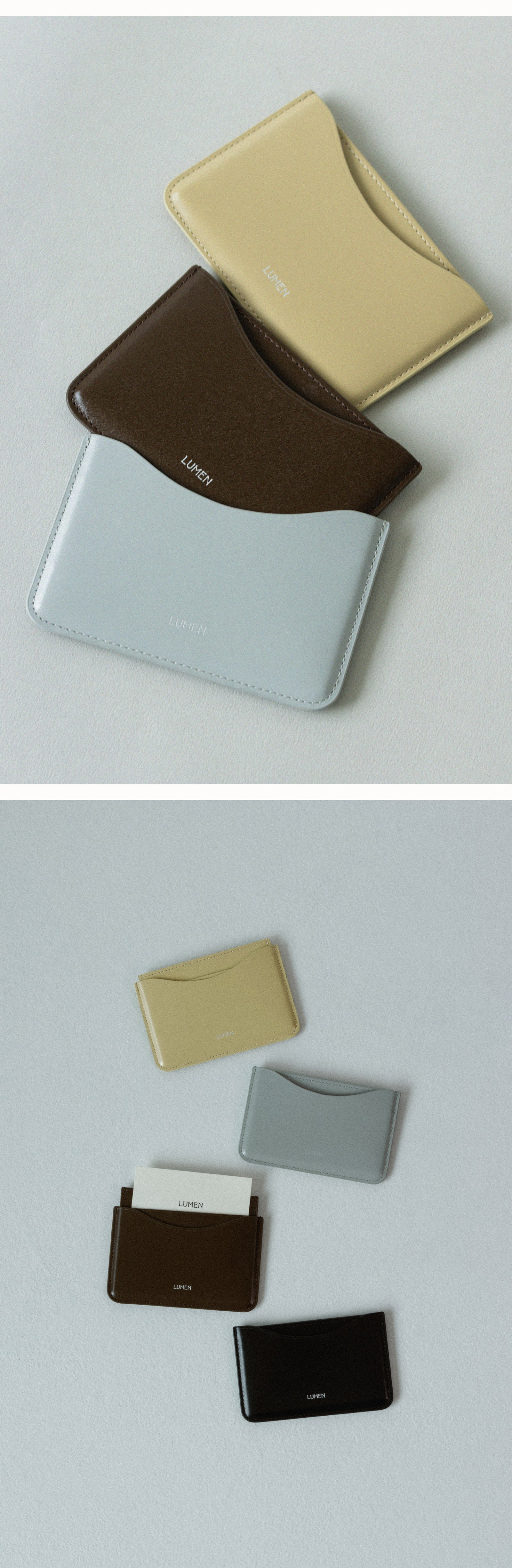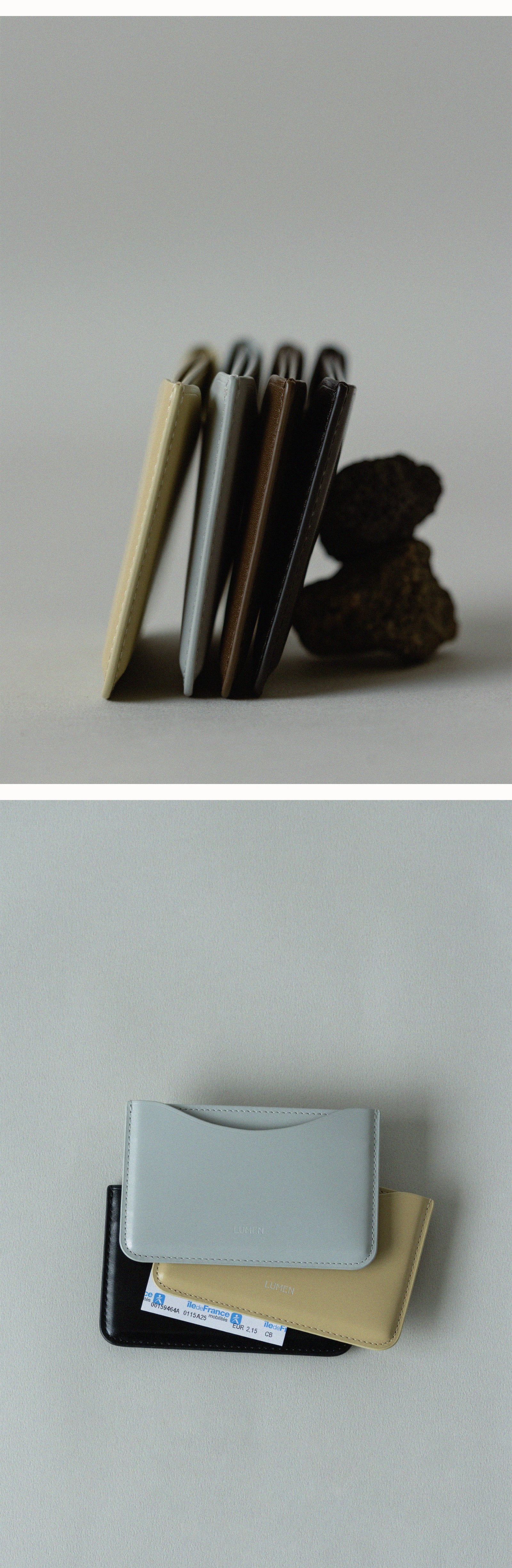 This is a minimal and slim design holder card case with a cover that hides the card. The smooth cowhide with few pores further maximizes the subtle gloss and minimal design. The holder card case is a product that has both a luxurious design and functionality. The card slot has a duplicate recognition prevention function, so only one card is recognized, allowing for convenient use. *Please insert your transportation card in the slot opposite the symbol mark of Lumen. It has two functions: better absorption of terminal recognition and blocking of other cards. *You can conveniently use frequently used cards by inserting them outside.