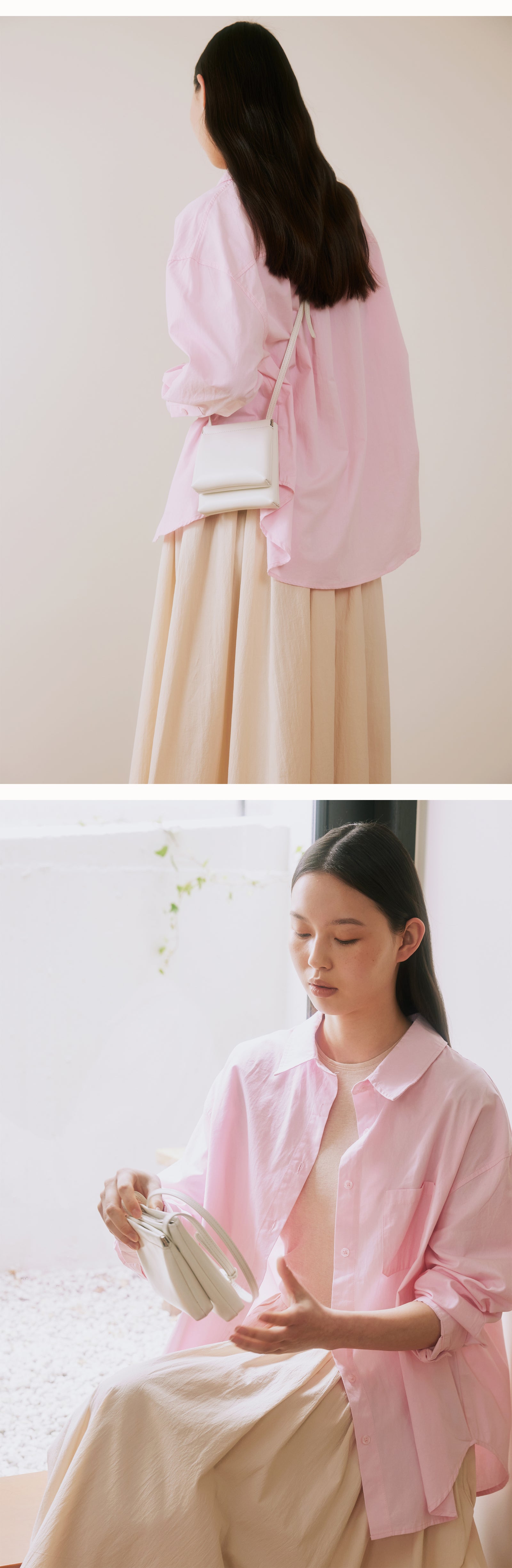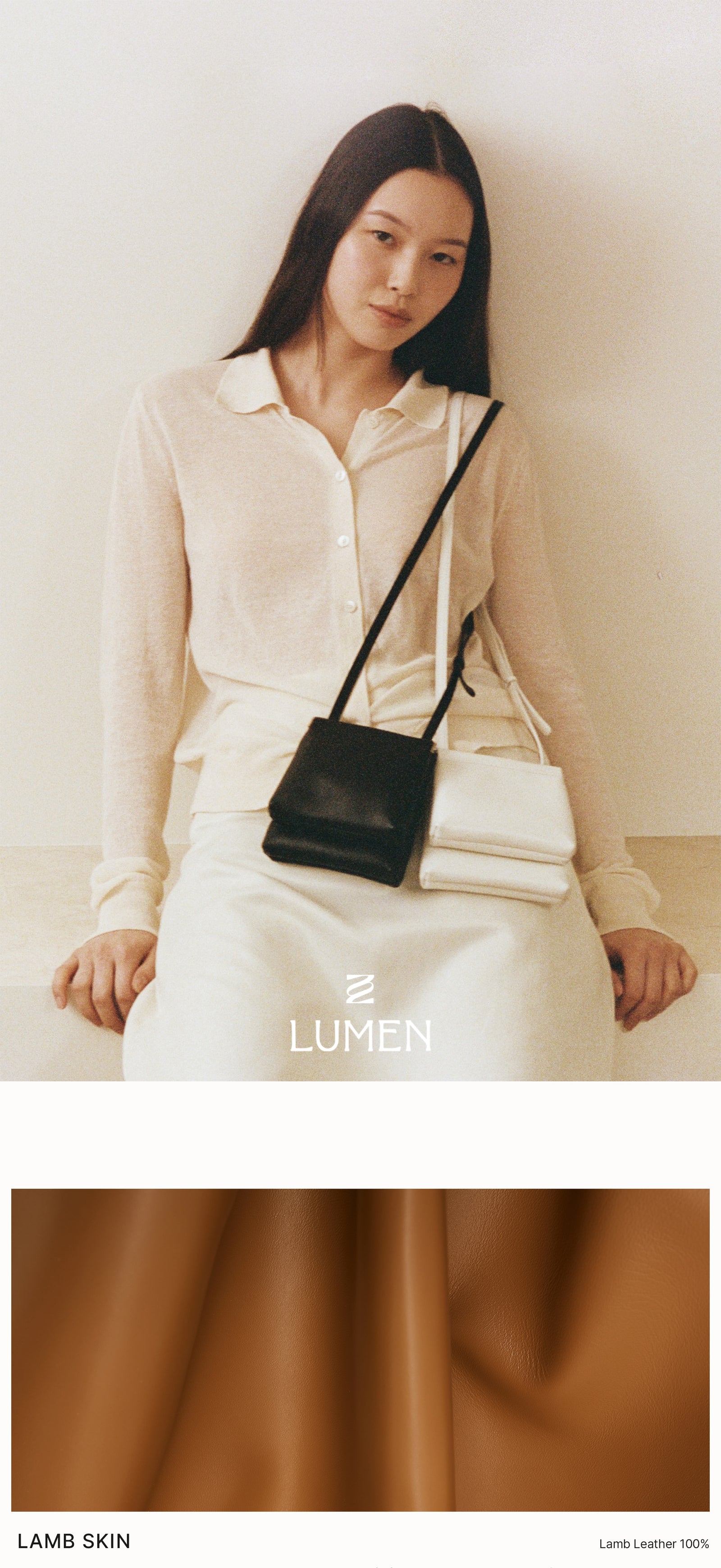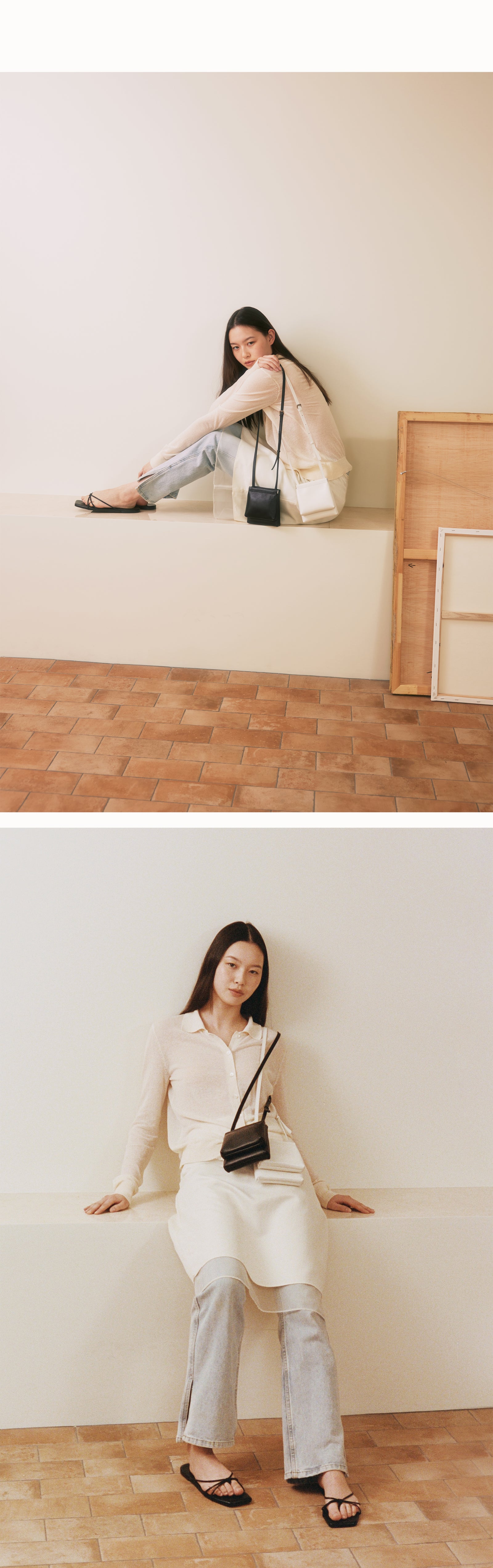 It is a Mon bag that features a double opening structure with a minimal design.It is separated into a front frame opening and a rear zipper opening.It gives different lengths, making it easy to store depending on the props.Using natural sheepskin, it can be worn lightly with a soft texture and compact size mini bag.The strap is fixed and adjustable in length, so it can be used as a shoulder bag and cross bag.