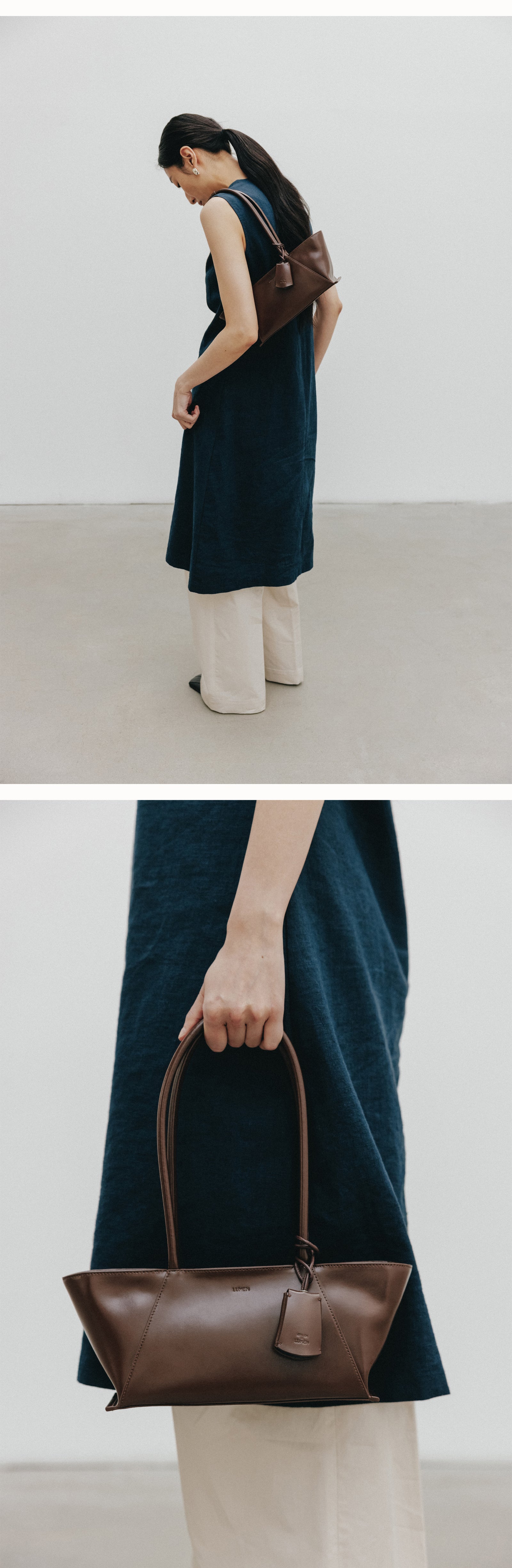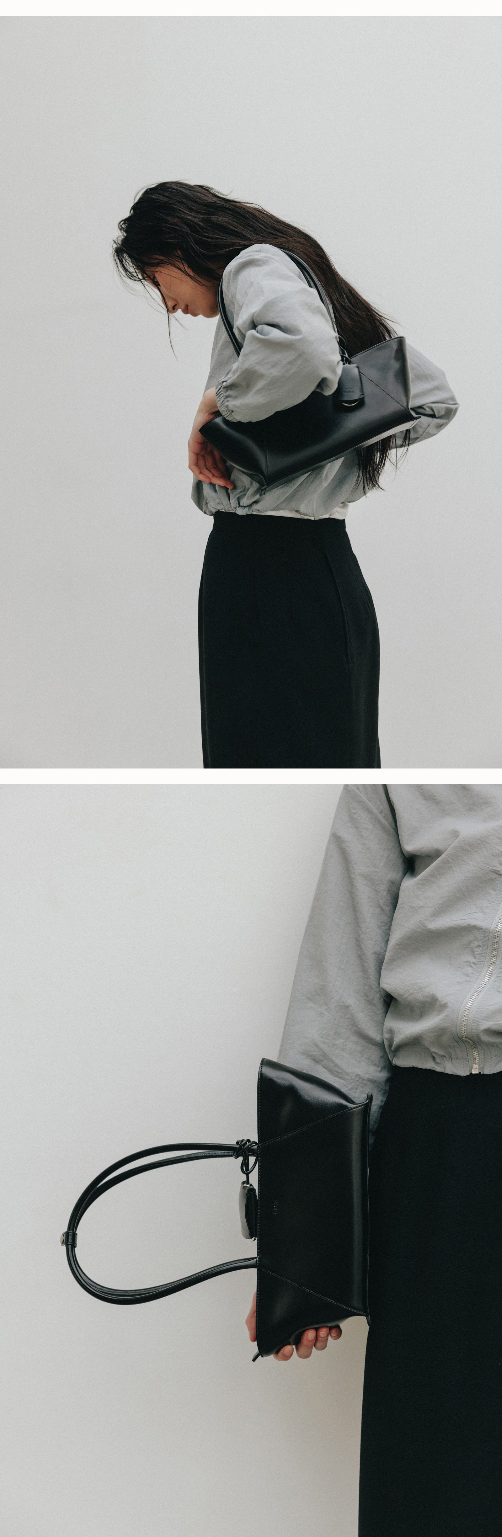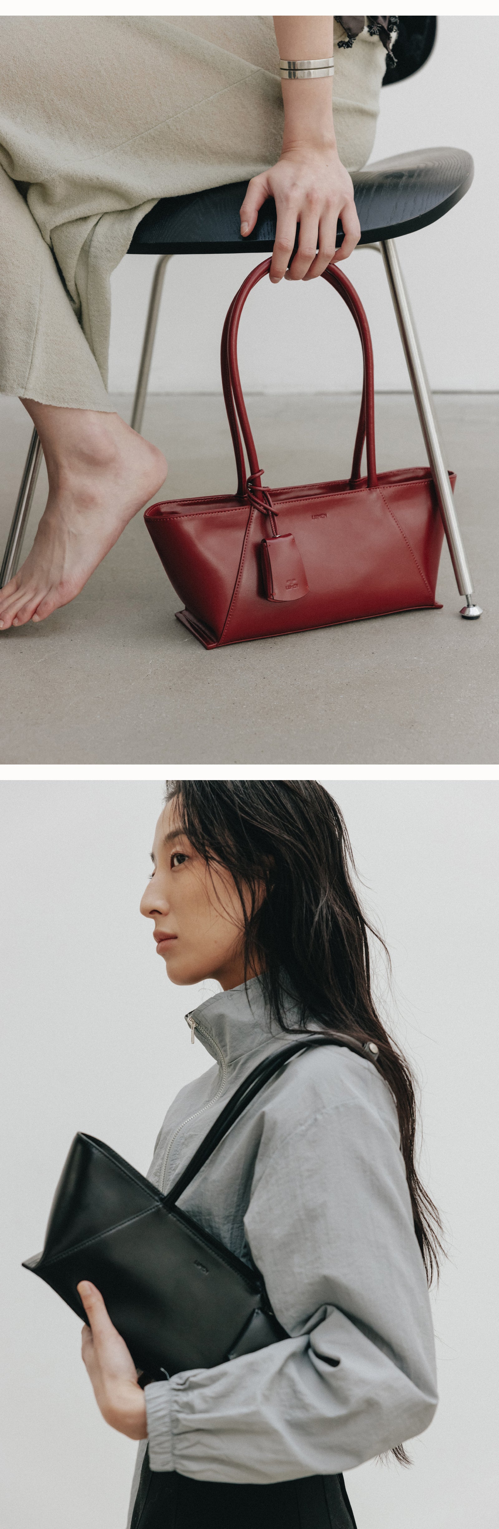 This is the Monique shoulder bag, which reinterprets the existing Monique bag and emphasizes the silhouette. The scratch-resistant cowhide leather is not only durable but also adds sophistication with its subtle sheen, and the leather wing detail on the bottom that extends from the wide opening emphasizes the flowing silhouette. The O-ring charm, which combines practicality and style, can be layered with a key or additional key ring to create a unique style for each individual.