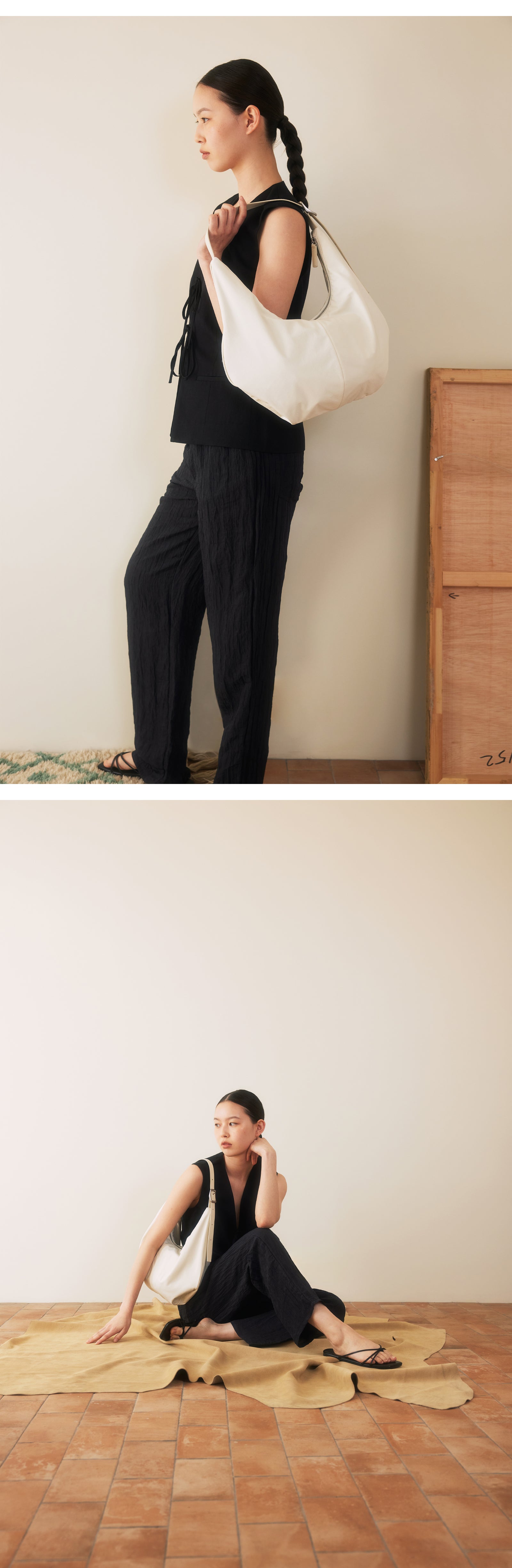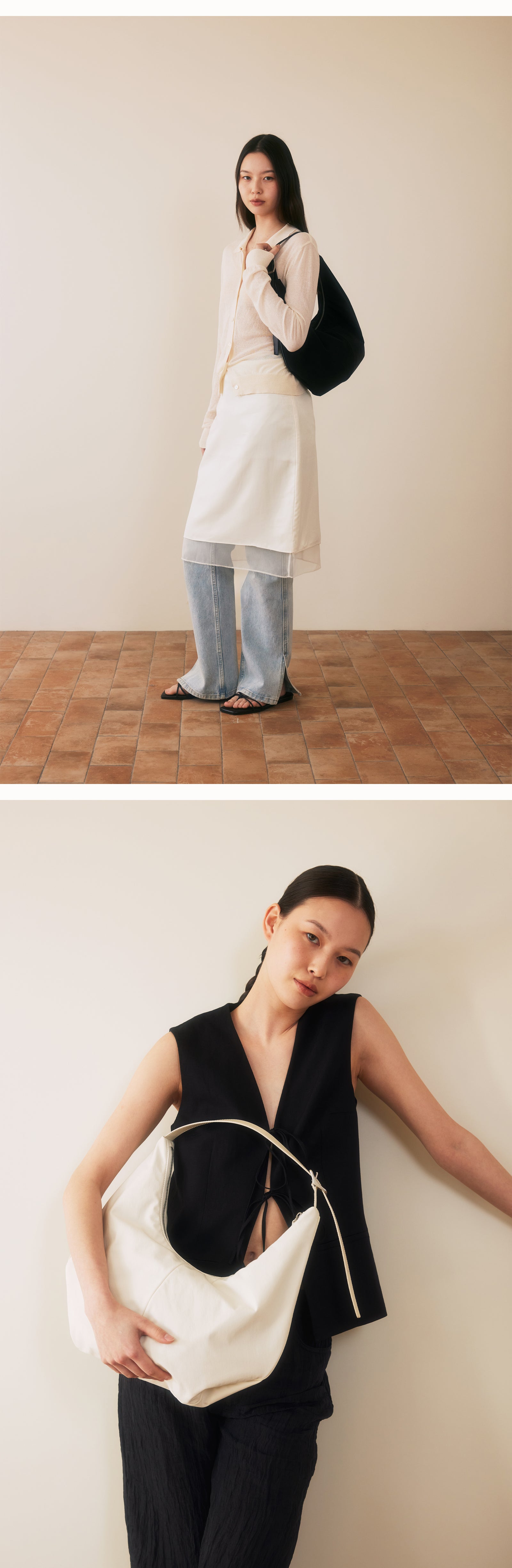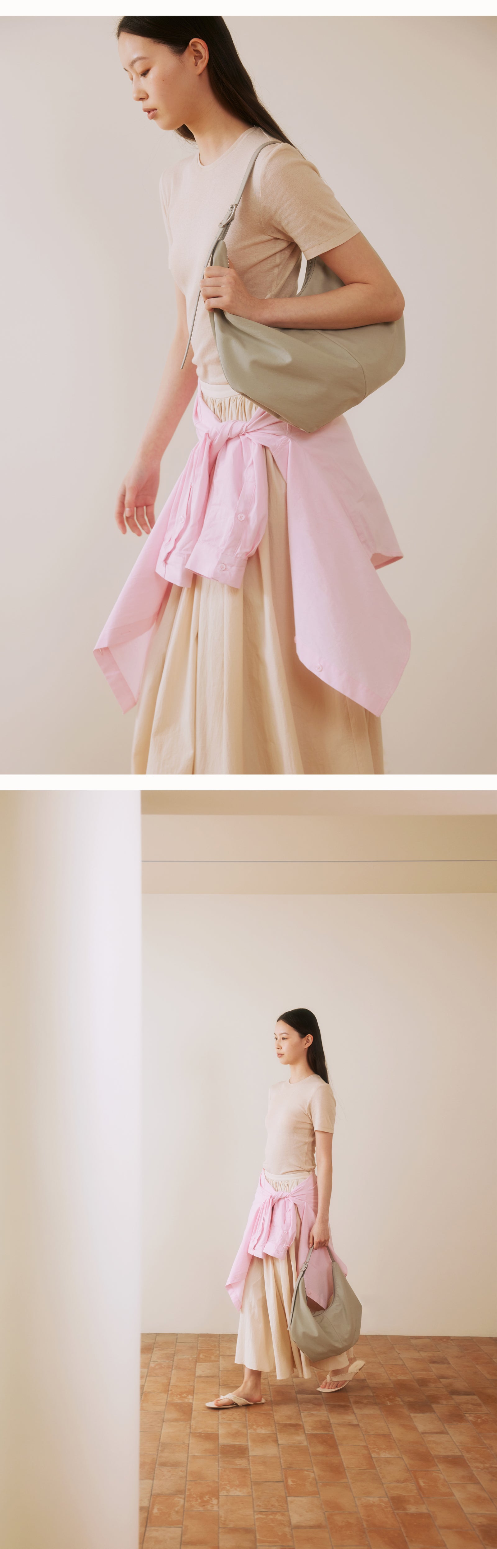 It is a Mossy hobo bag with a unique structure and an attractive natural wrinkle surface.It uses matte nylon with an attractive rustling touch and a calm link surface.The side-folding structure creates a high-quality volume shape wear. It's light and soft with plenty of storage, so it's comfortable to wear.The handle is made of cowhide and is adjustable in length with the buckle decoration of lumen with nickel and surface processing.