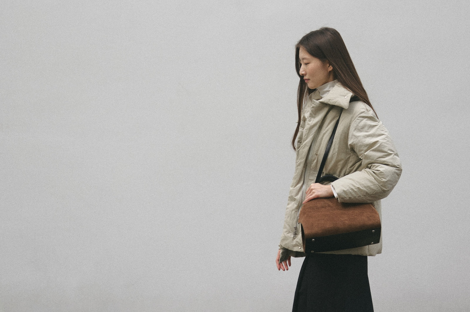 This is a Nadel bag with a design that features decorative fastening on the overlapping sides. The simple appearance and softly folded sides add a sense of luxury. It is made of scratch-resistant cowhide leather, so you can wear it with confidence in your daily life. The side decorations are magnetic, making it easy to store your belongings, and the bottom decoration prevents contamination of the product. It has a detachable strap, so you can wear it in various ways as a shoulder bag or cross bag.