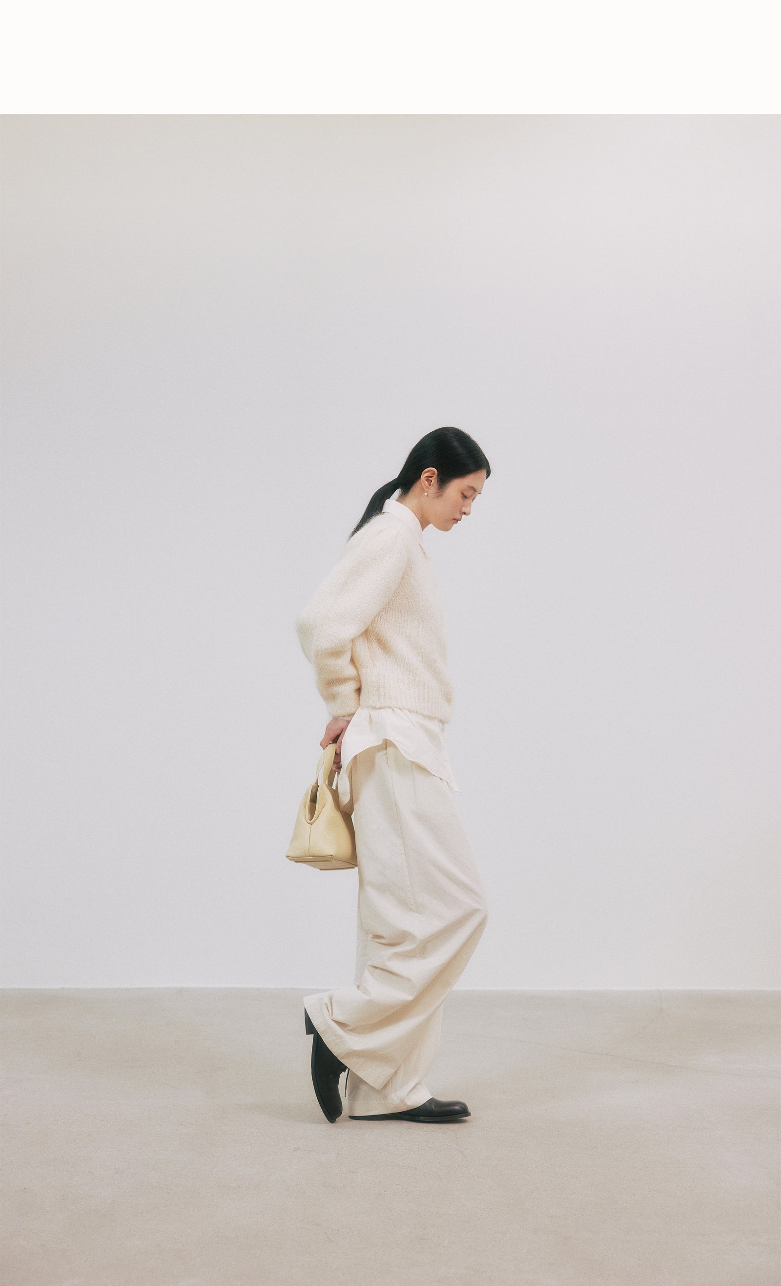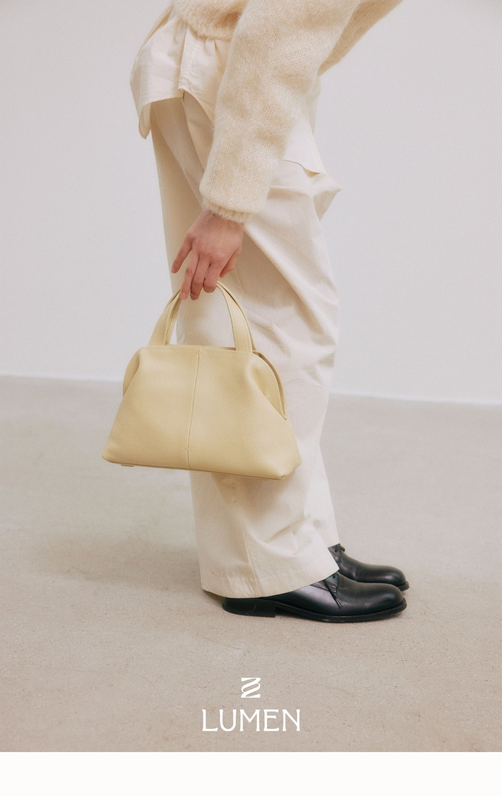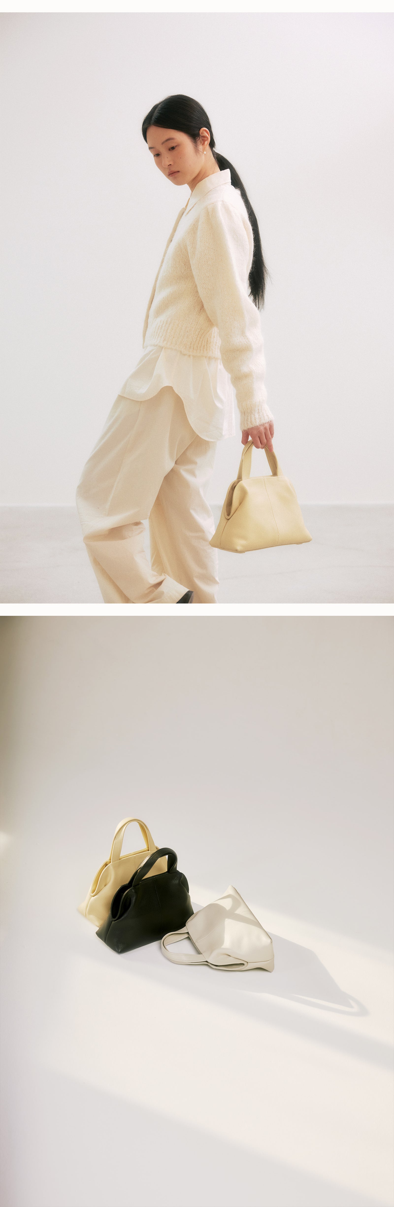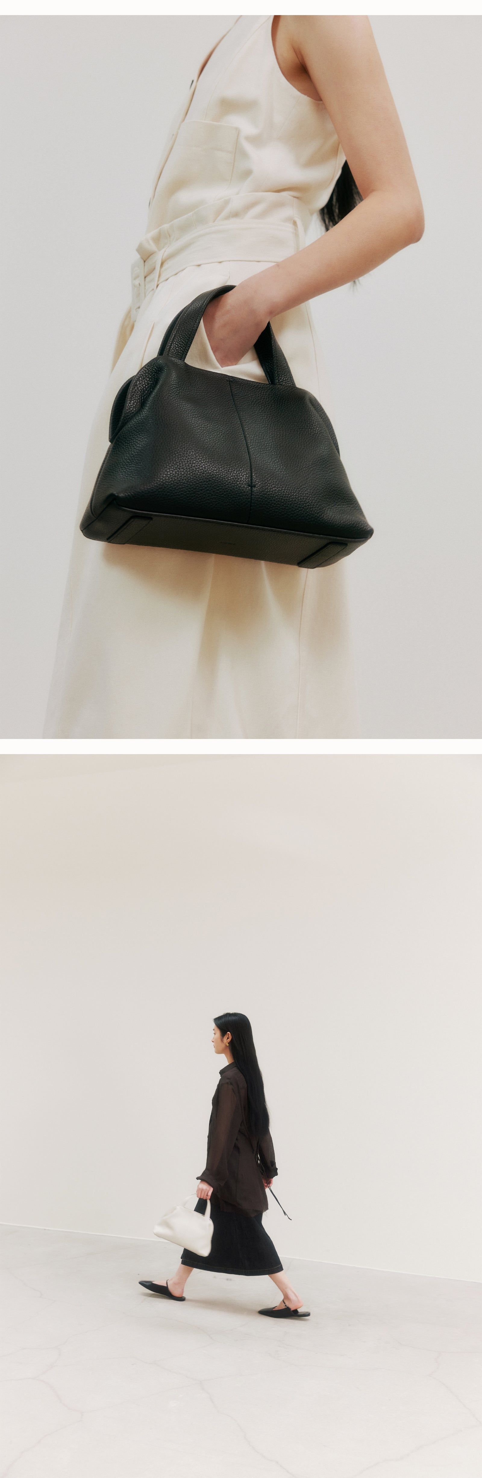 It's a Pav petit bag with a unique and luxurious volume by folding the sides.Soft yet sturdy, natural embossed cowhide is used to create a stylish shape that is slashed casually.It can be opened and closed comfortably with magnets and has two pockets inside.The pavesty bag can be worn as a tote bag.