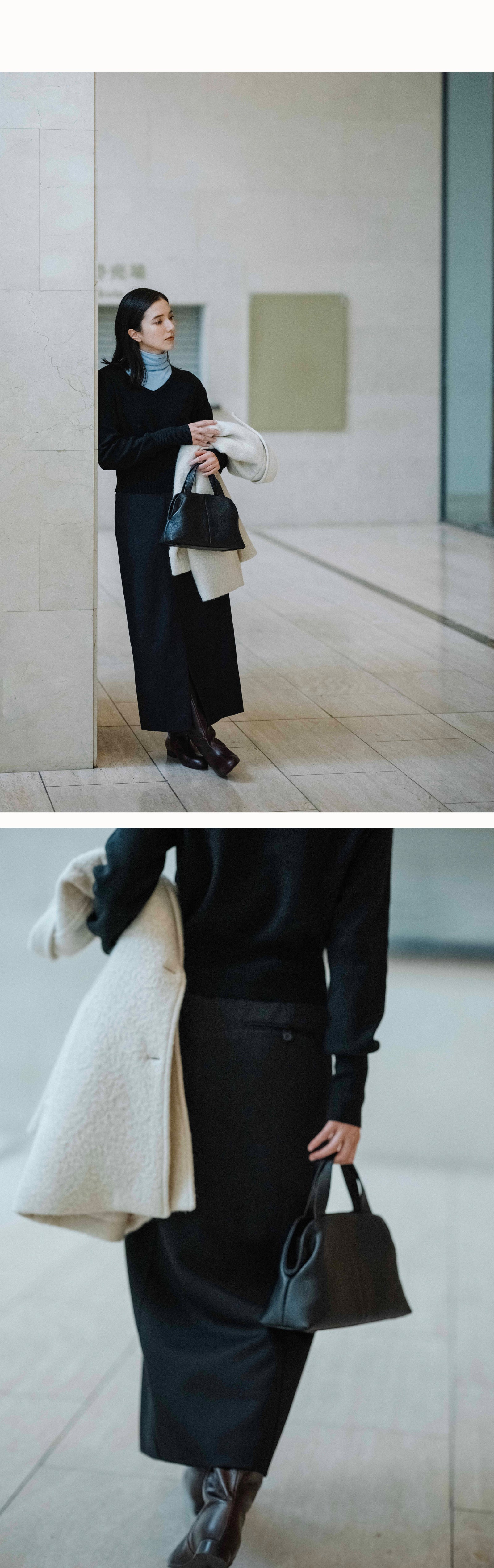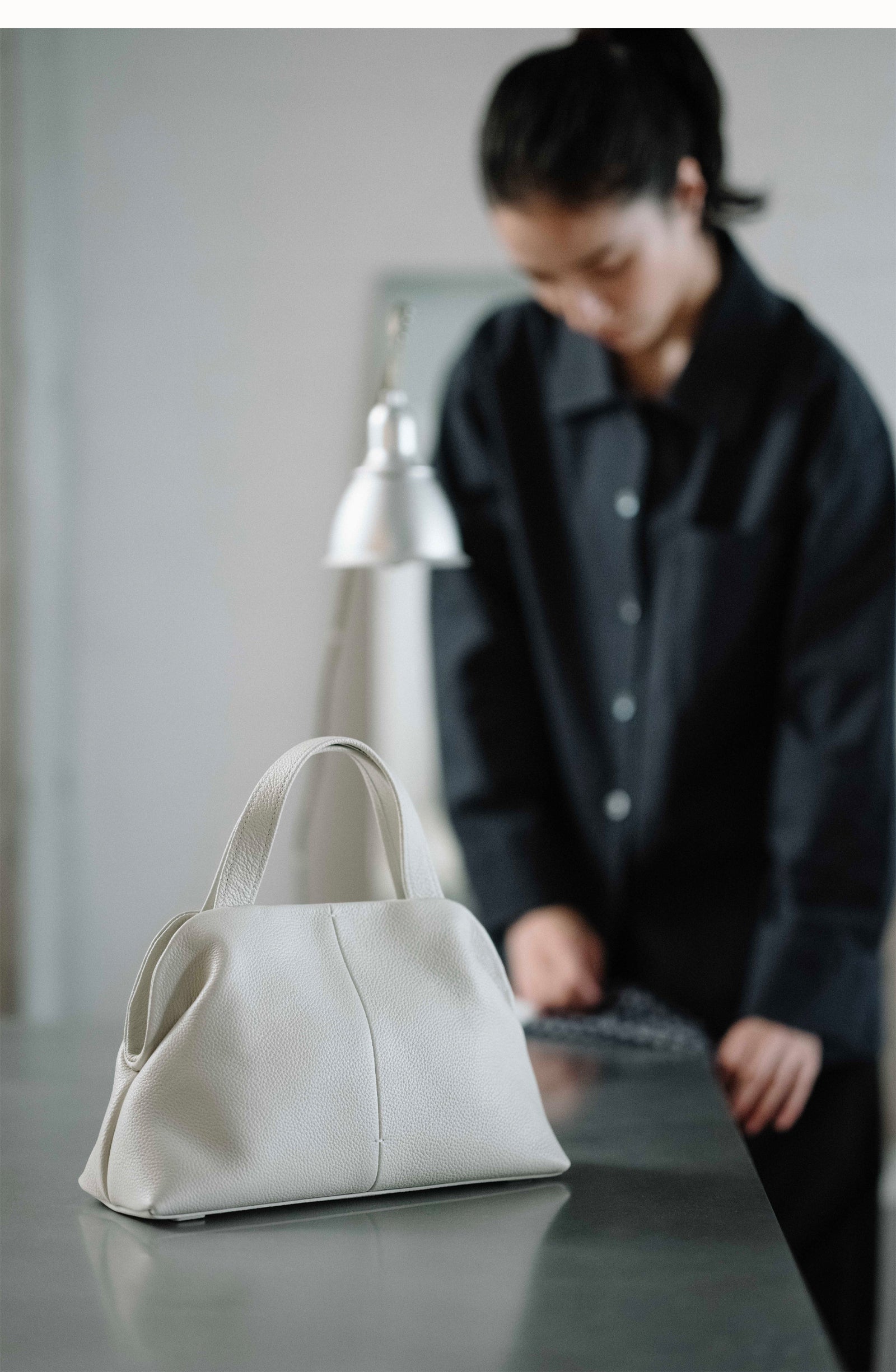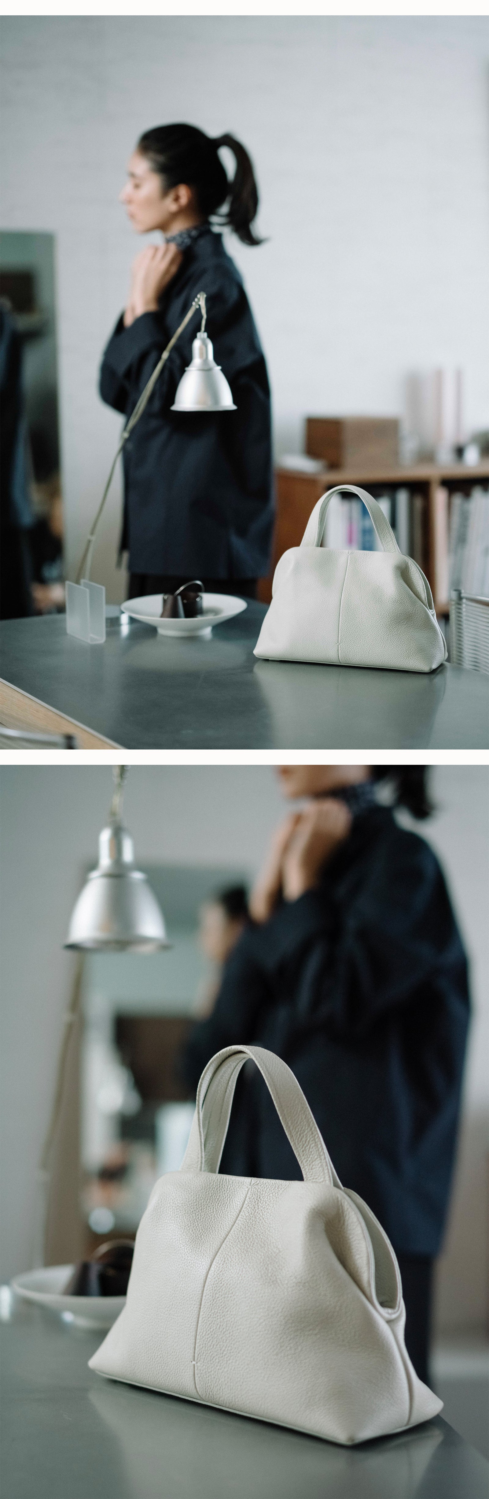 It's a Pave petit bag with a unique and luxurious volume by folding the sides. Soft yet sturdy, natural embossed cowhide is used to create a stylish shape that is slashed casually. It can be opened and closed comfortably with magnets and has two pockets inside. The pave bag can be worn as a tote bag.