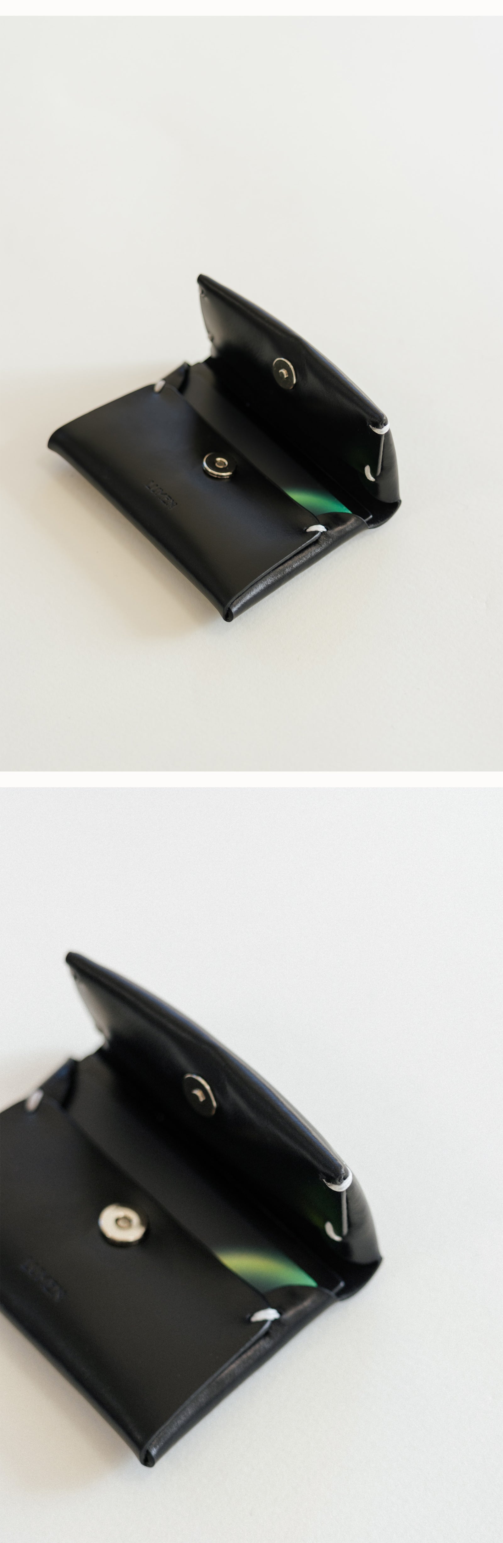 This is the Plier Card Holder from the Plier series. The Plier series features a structure made by folding a single piece of leather and a minimal design finished with minimal stitching without any sewing lines. It can be conveniently opened and closed with a magnetic open-close method, and the internal card compartment is separated for easy storage. Its compact size fits in one hand and provides convenient use in everyday life.