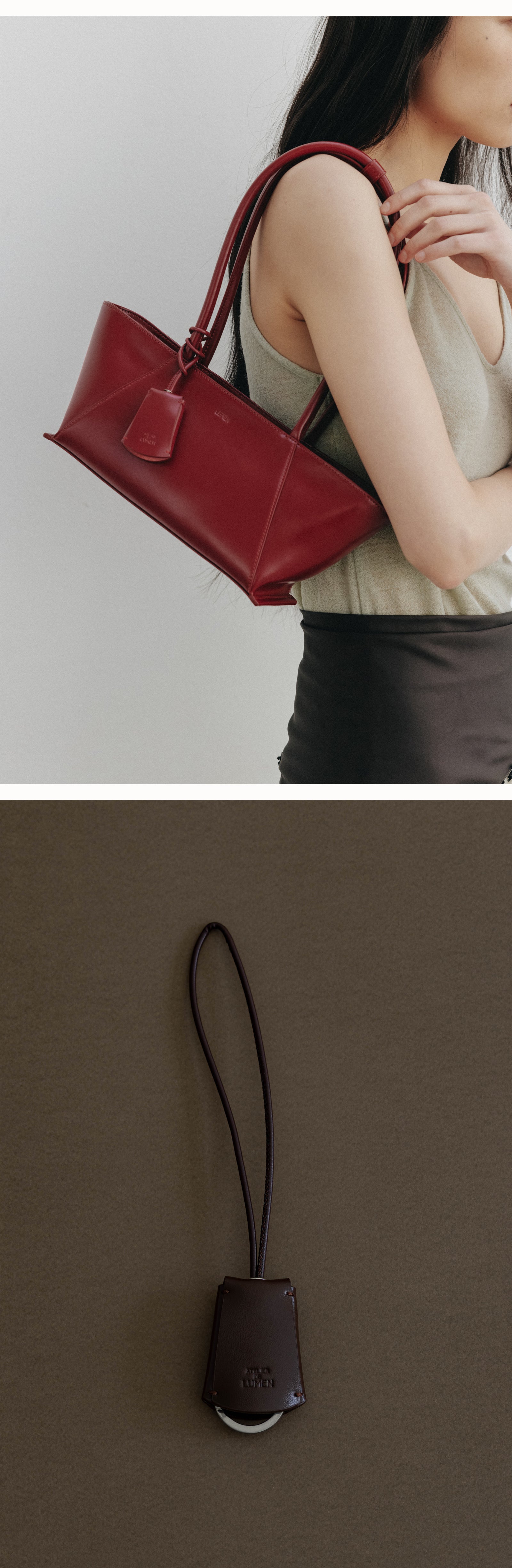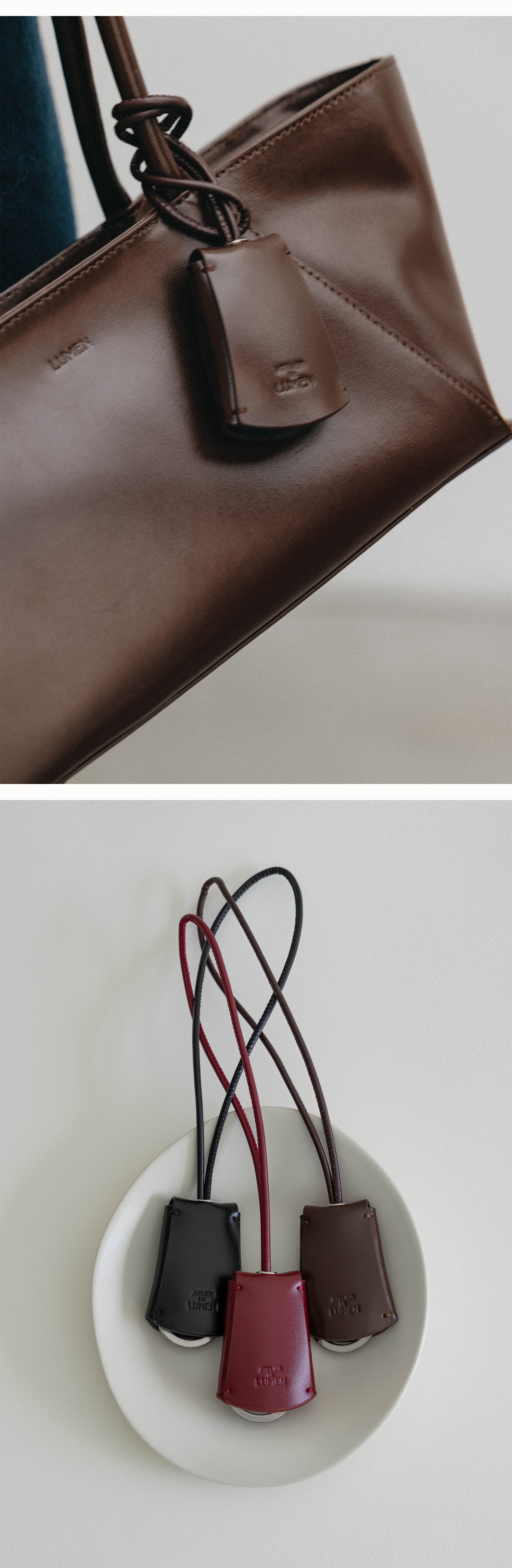 This Rondelle charm has stitching between the overlapping leather to give it a point. It can be hung on a handbag to add a point, and can be layered with keys or additional key rings to create a stylish look. This charm decoration stands out for its practicality with its simple design and lightweight structure.